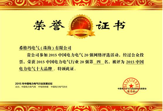 2、 热烈祝贺ledong登录入口(珠海)有限公司荣获 2015中国电力电气20强网络评选活动第四名的成绩,被评为“2015中国电力电气十大品牌”称号